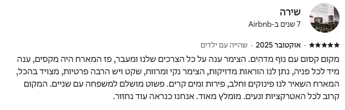 ✔ אהבה אמיתית לאירוח – מארחים מהלב, באכפתיות וביחס חם שמורגשים בכל רגע.